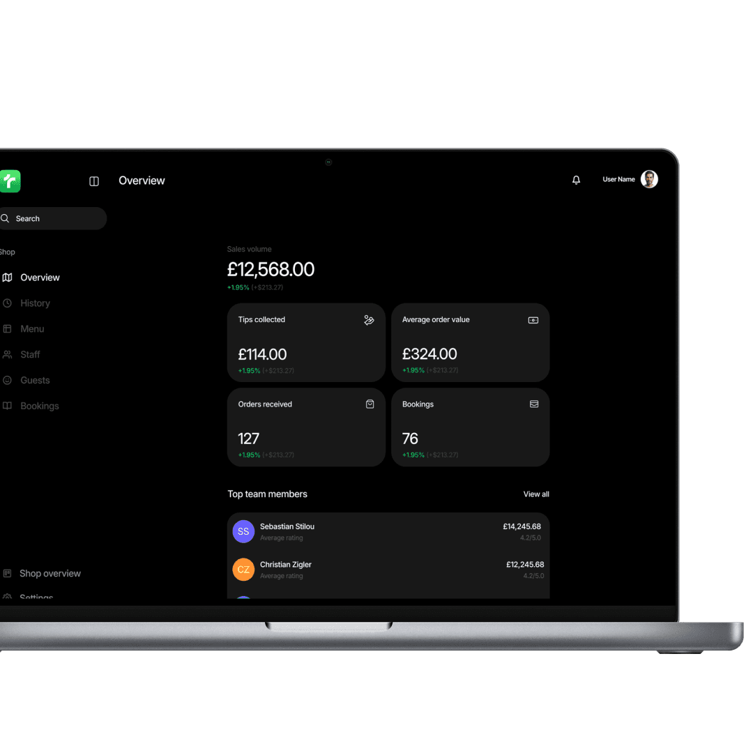 Switch between checking staff performance and realtime sales instantly with a smooth, secure interface.